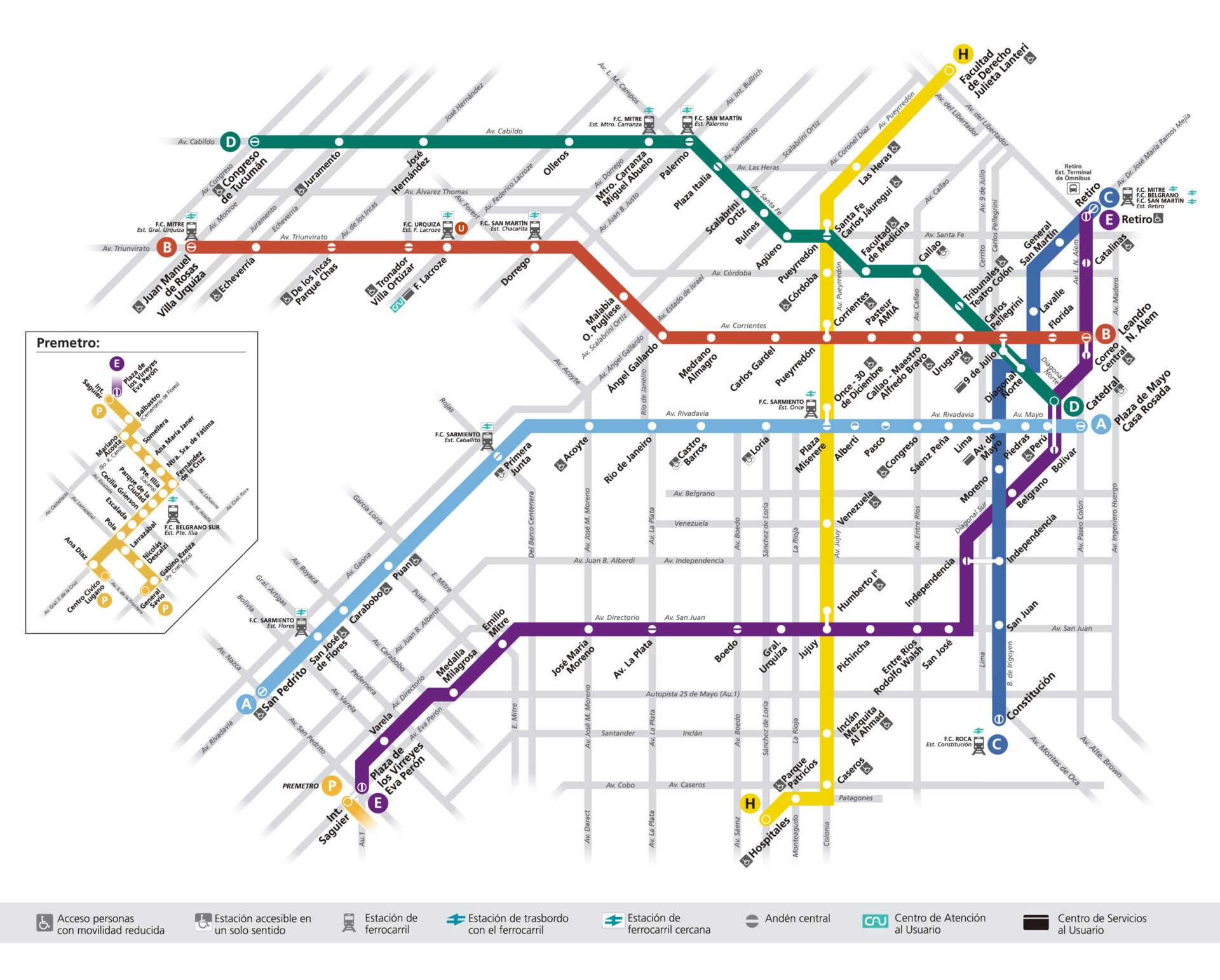 Red de subtes de Buenos Aires, tomada de la web de Metrovías