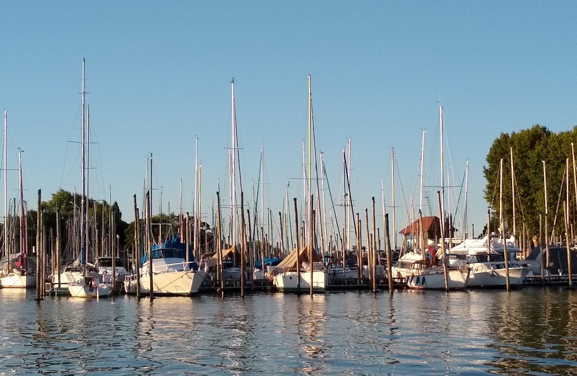 Una al lado de la otra vemos las embarcaciones iluminadas por los últimos rayos del sol. Bajamos y nos dirigimos al muelle aledaño.