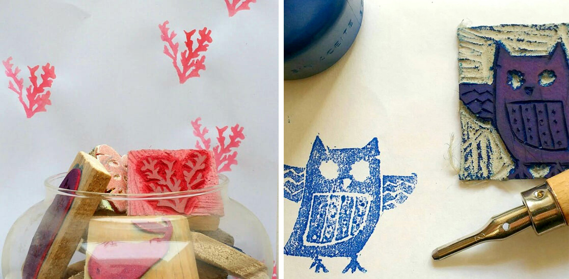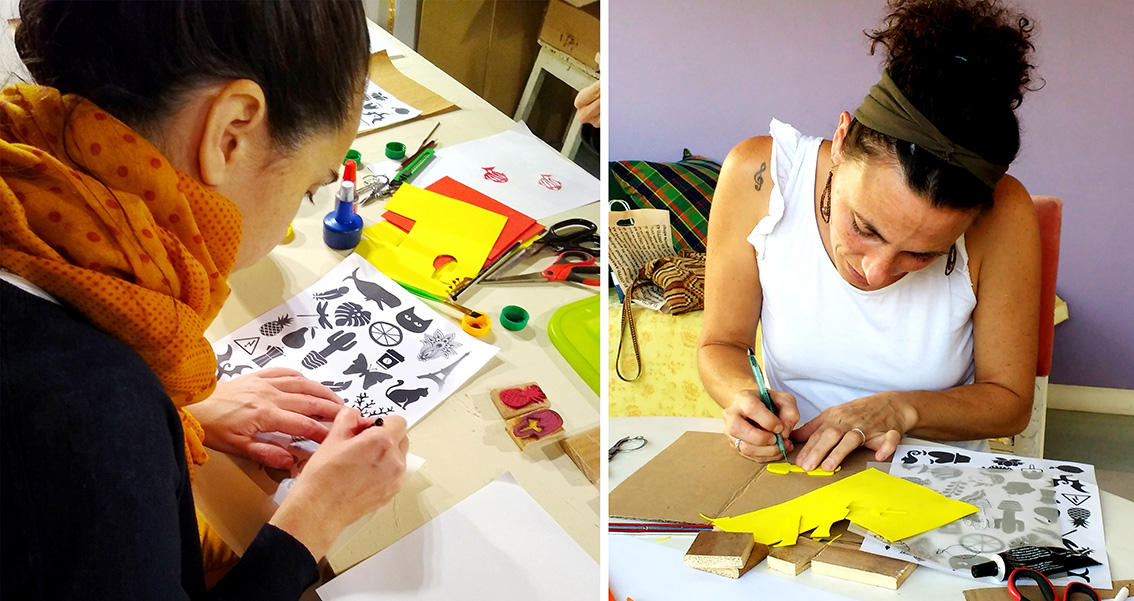 Esto sumado a mi profesión, que es la de diseñadora gráfica, me llevó a crear una experiencia de estampas o sellos caseros, que cualquier persona puede aprender a hacer y utilizar tanto en papel o textiles, para comunicar una idea gráfica o simplemente para realizar alguna tarea decorativa.