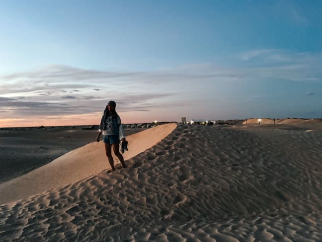 Quería pasear descalza, tirarme por las dunas, sentir la inmesidad del desierto a cada paso.