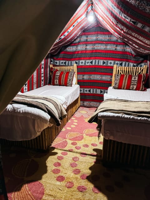 Si te da cosa dormir en la tienda, por lo que sea, miedo a escorpiones, ruidos nocturnos, el querer ir al baño, etc, como ninguno de estos campamentos tradicionales incluyen agua, ni baño en el interior de las tiendas, puedes optar por estos alojamiento que son un poco más cómodos y hacer las actividades del desierto, sin necesidad de dormir en una tienda. Al final el viaje para cada uno se tiene que adaptar a sus gustos, y nada es mejor ni peor.