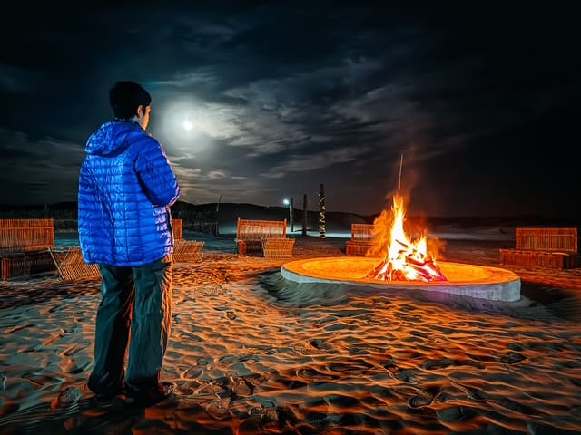 Me pareció un momento super íntimo, rodearnos con desconocidos alrededor de la hoguera mientras el sol desaparecía entre las dunas.