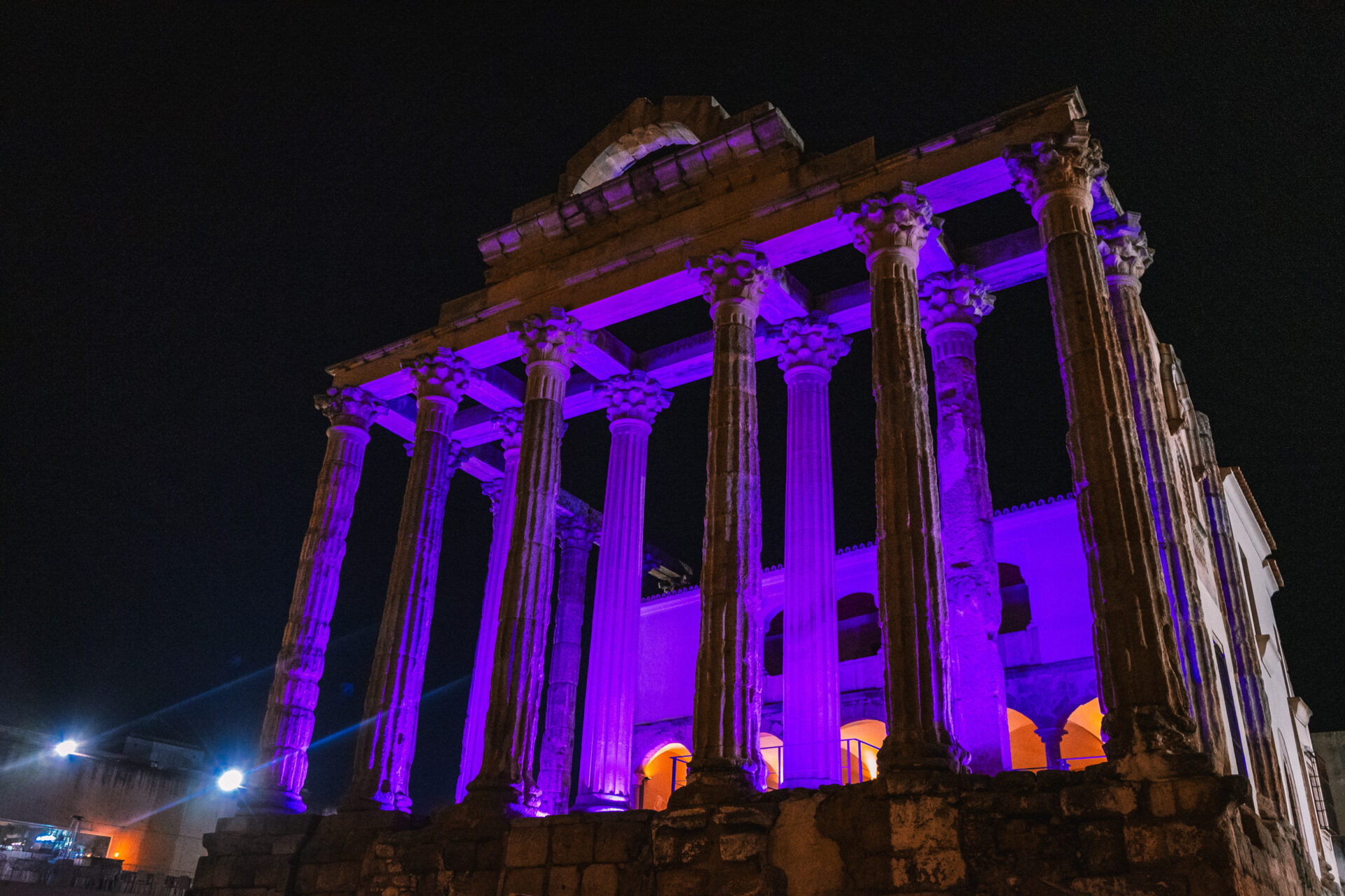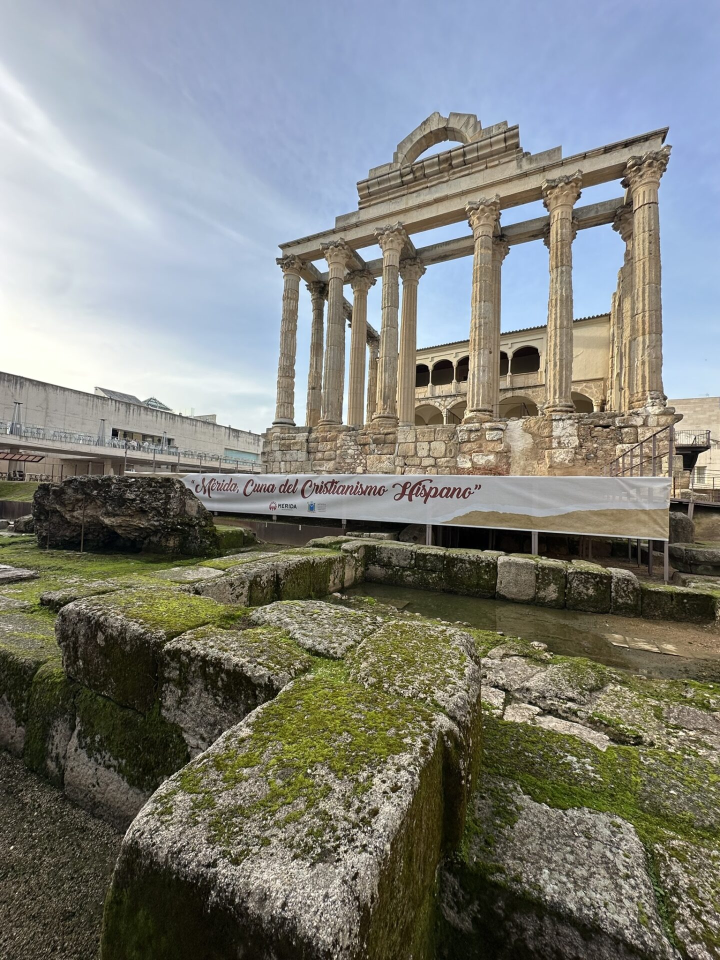 Construido en el siglo I d.C., era un majestuoso templo romano dedicado al culto imperial, no a la diosa Diana, como su nombre sugiere. Su estructura de granito, con columnas corintias, sigue en pie en pleno centro de la ciudad. En la época medieval, se integró en un palacio renacentista, lo que ayudó a su conservación. Hoy es uno de los monumentos más icónicos de Mérida y un testimonio de su grandioso pasado romano.