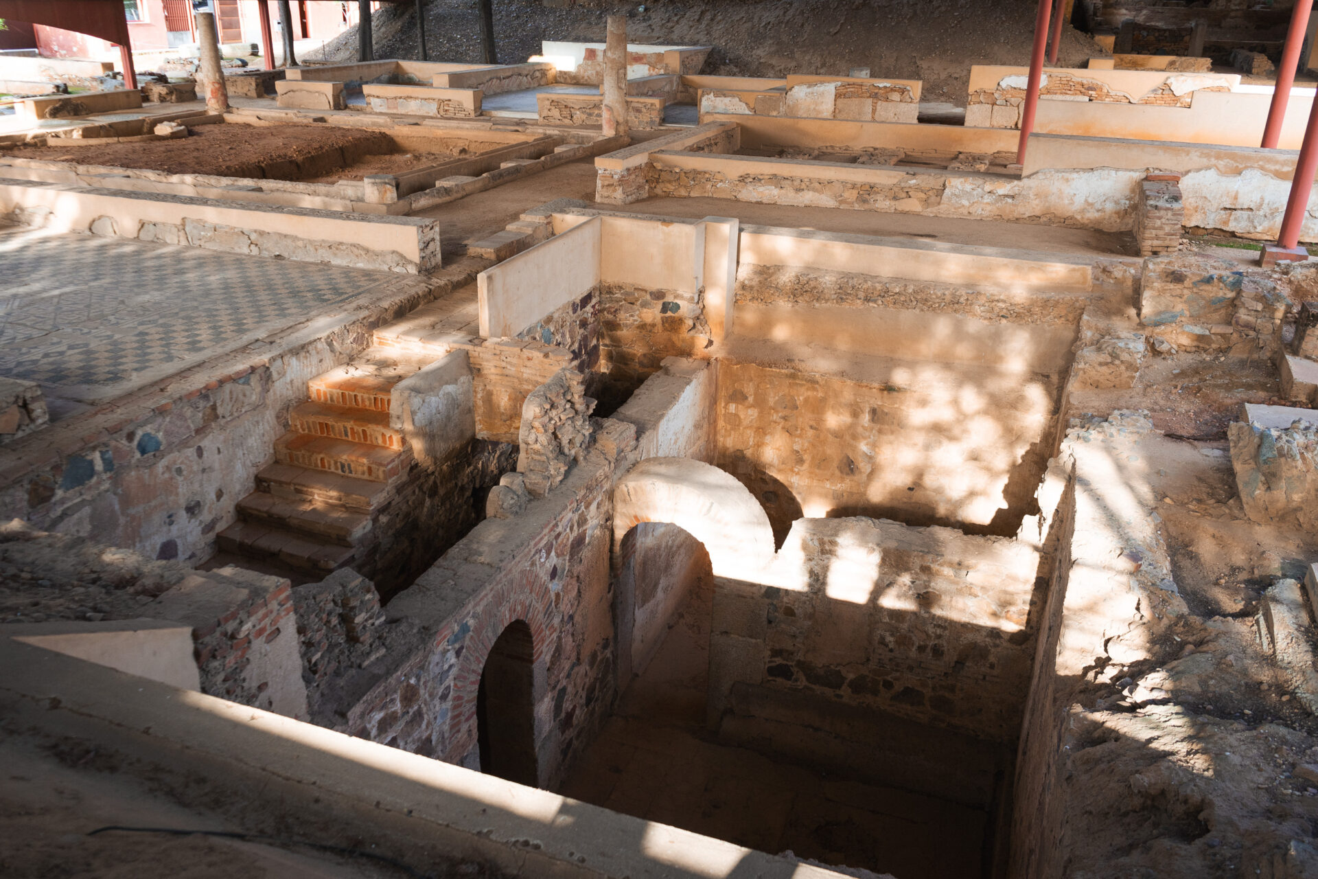 Es una villa romana situada en Mérida, famosa por su espectacular mosaico de Apolo y sus columbarios, donde se guardaban urnas funerarias. Este complejo, de finales del siglo I d.C., combina una vivienda con elementos religiosos, destacando la presencia de un pequeño templo mitraico. Es uno de los mejores ejemplos de la adaptación romana de los cultos orientales en Hispania. Además, los frescos y detalles arquitectónicos ofrecen un vistazo único a la vida privada y religiosa de la época.