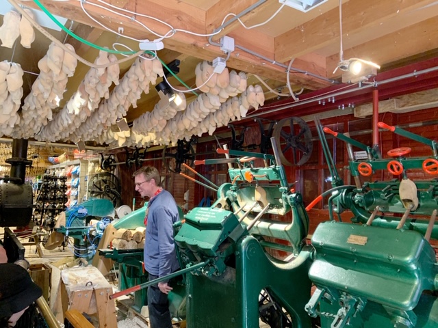 Aquí visitamos una fábrica de zuecos, que la verdad, salvo que le quieras amargar la vida a tu vecino de abajo, para los pisos en España con parket, no los termino de ver (donde esten unas crocs..).