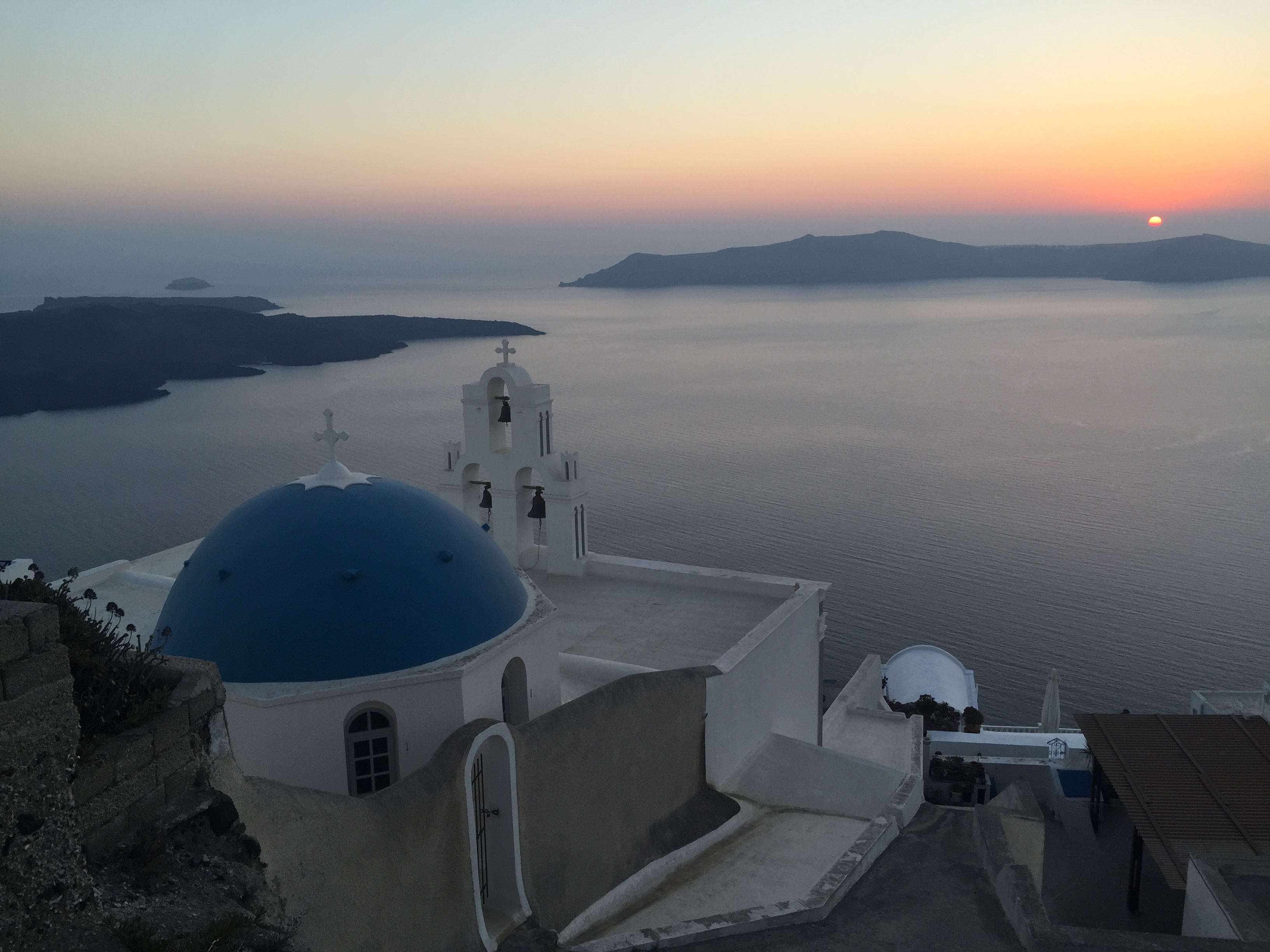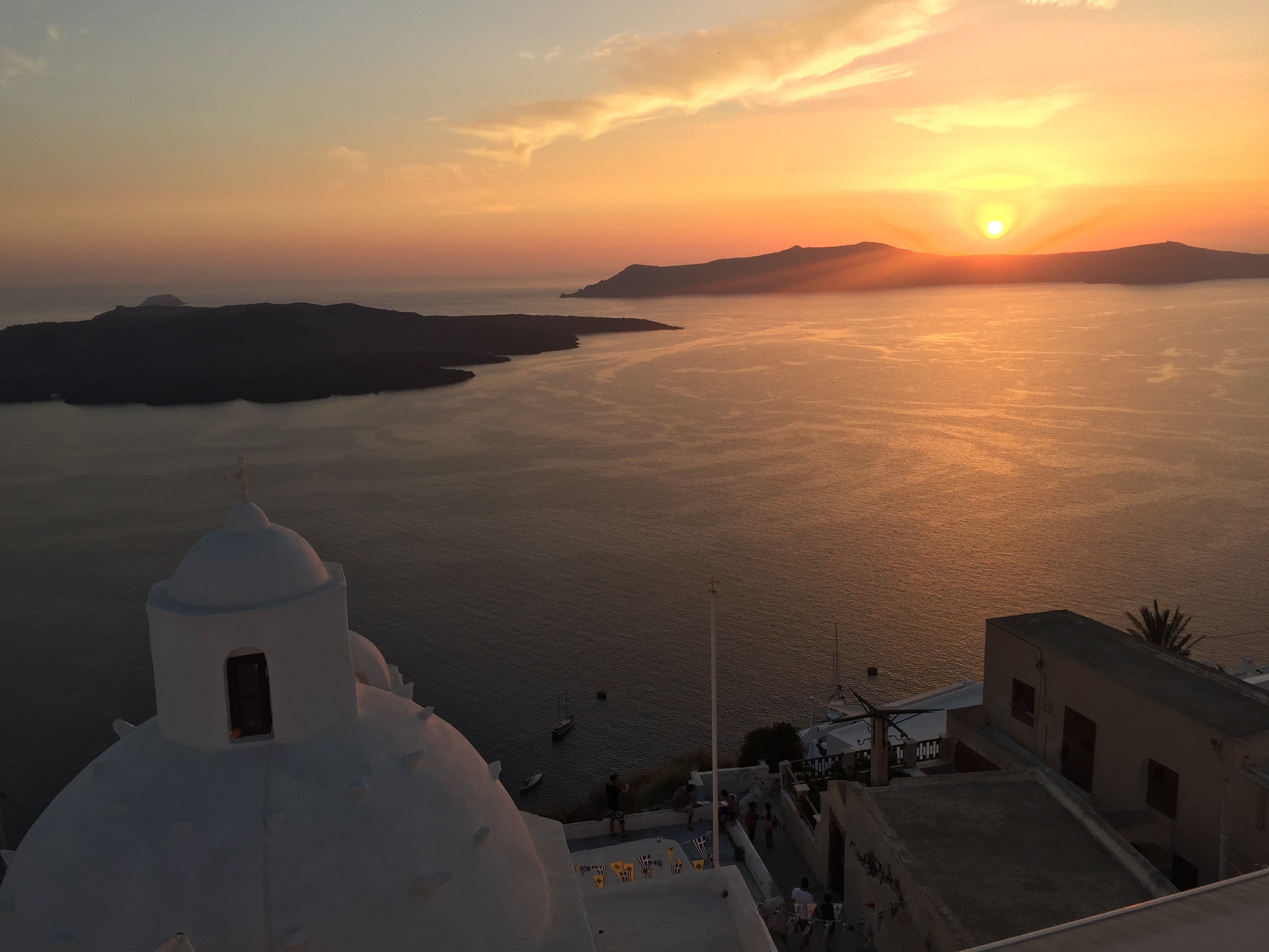 Thira, la capital de la isla, también es muy bonita, y para mí, es el mejor sitio donde ver la puesta de sol, ya que está justo en medio de la isla, y está perfectamente encarada a la caldera.