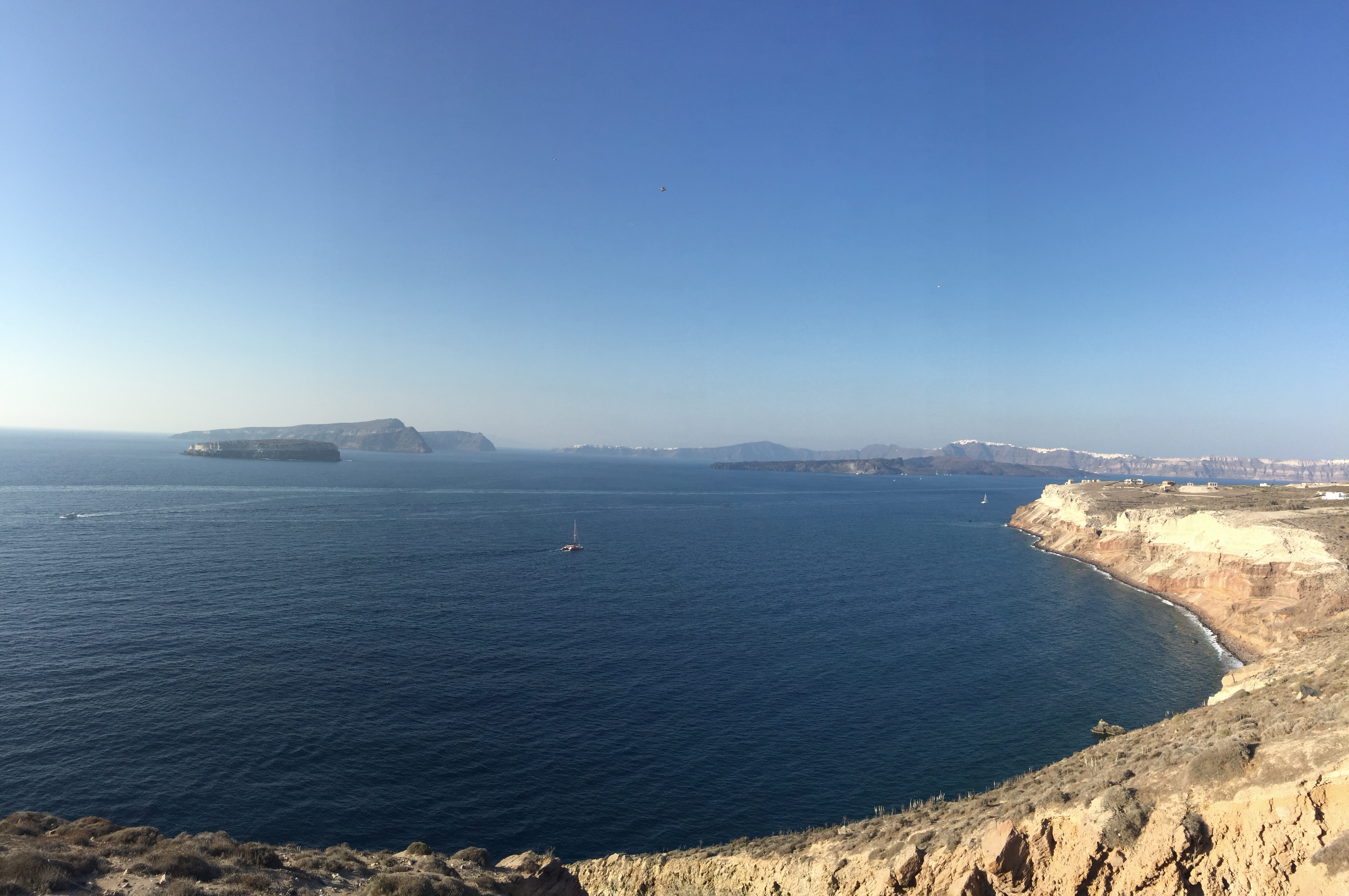 Para hacerte una idea, desde el pueblo más al norte, Oia, hasta el punto más al sur, que es el faro de Akrotiri, tienes casi 26 km, que en tiempo viene a ser algo menos de 1 hora.