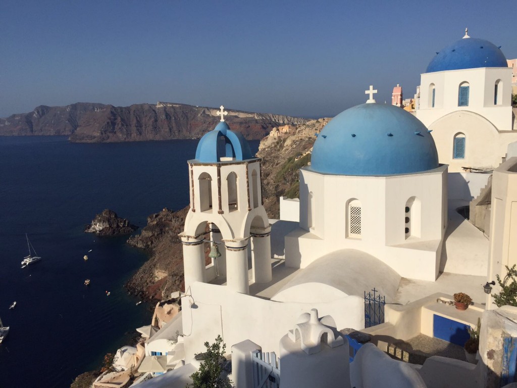 Como ya sabrás, Santorini es una isla volcánica, y toda la costa oeste, donde se sitúan los pueblos de Oia o Thira, que aparecen colgados al abismo de un gran acantilado. Justo delante está el cráter del volcán, que es la famosa caldera.