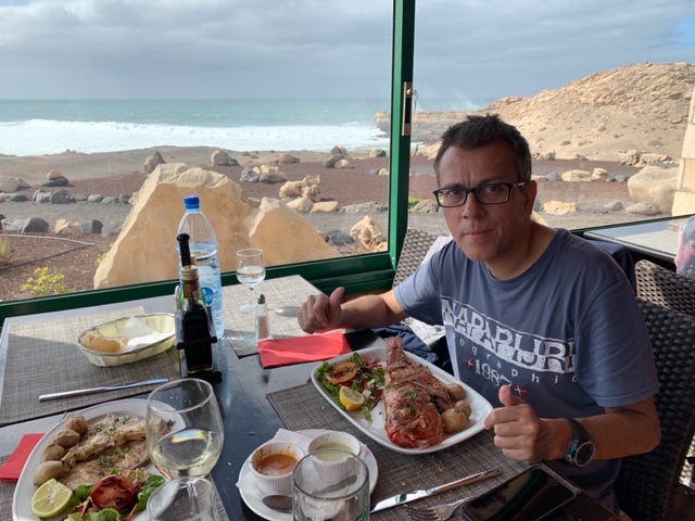 Me encanta el pescado fresco, y no pierdo la oportunidad de probar pescados de cada zona, que no puedo disfrutar en mi día a día. En fuerteventura probamos el cherne y la Fulla Roja.