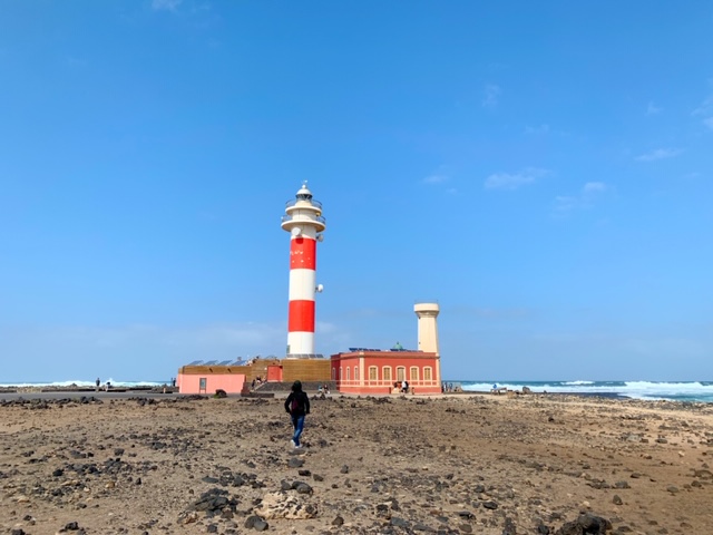 Decía que Morro Jable es otro lugar muy turístico, en el se encuentran muchas cadenas hoteleras que se han cargado la estética de la costa, a mi parecer. Nos hicimos una foto en el Faro de Morro Jable, tomamos un café, y seguimos carretera y manta.