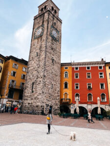 En Riva de Garda, todo sucede alrededor de la Plaza Mayor, que tiene una alta torre o Torreón campanario, qué me recordó mucho a la torre de Puigcerdá (como sabéis uno de nuestros pueblos favoritos en la Cerdanya catalana). En esta plaza hay mucho ambiente de terraceo, tanto por la mañana en el desayuno, como la tarde y la noche. El pueblo se recorre paseando en un par de horas haciendo pequeñas paradas. También puedes alquilar un patinete de pedales y visitar el Museo o Alto o Rocca, que es un castillo medieval, una especie de fortaleza, donde hay un Museo, que cierra a las 18:00 de la tarde.