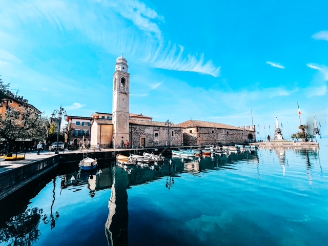 Si me preguntan cuánto tiempo necesito para visitar Lazise. Te contestaré que dependerá de lo que quieras hacer y el ritmo que pretendas llevar. Si sólo quieres tener una pequeña idea, callejeando por las calles importantes, la Iglesia, y el puerto, que es muy pequeñito, te diría que con un par de horas es suficiente. Si la vuelta al Lago de Garda, te la quieres tomar con calma, yo aquí me podría quedar fácilmente una noche o dos si hace buen tiempo, pues hay alojamientos con encanto y granjas ecológicas alrededor, por no hablar la de cafeterías y restaurantes donde tomarte un Spritz y comprar recuerdos. Decir que aquí hice casi todas mis compras: un bolso, y un conjunto de pantalón y blusa, se vinieron conmigo y he llevado muy a gusto en la temporada de verano. Ya se sabe el estilo que tienen los italianos.