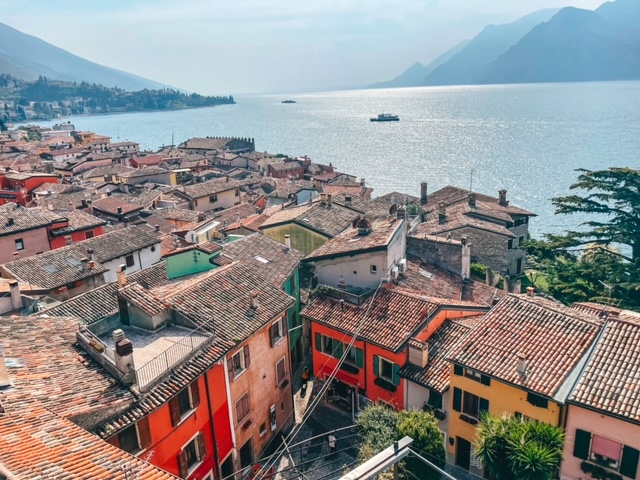 Yo recomendaría para dormir: una de estas tres localidades o bien Malcesine, en el centro este, bien Riva de garda ( en el norte) o Sirmione en el sur, y desde allí tomar los ferrys que unen uno y otro pueblo en barco por el lago.