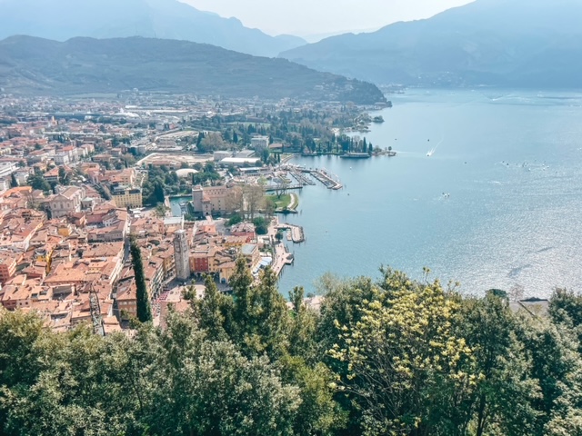 Lo que más me gustó fue subir al Bastione, con el teleférico, desde donde tienes toda la visión panorámica de Riva de Garda y del lago. Muy muy bonito. La subida en el teleférico tiene un precio por persona de unos €6 euros ida y vuelta (2.022). Se puede subir con animales de compañía . Desde allí llegas al Bastion, o Torreón, la antigua torre de defensa, que sobre todo la reconoceréis porque por la noche se ve iluminada desde abajo y con la montaña de fondo, es maravilloso. Además de en teleférico, también podéis hacer el recorrido por un sendero, no era de demasiada complejidad, pero leímos que e hora y pico de de trayecto, y al tener el tiempo muy marcado por el recorrido que nos tocaba hacer ese día, subimos con el teleférico. Merece mucho la pena.
