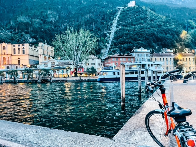 En Riva de Garda, todo sucede alrededor de la Plaza Mayor, que tiene una alta torre o Torreón campanario, qué me recordó mucho a la torre de Puigcerdá (como sabéis uno de nuestros pueblos favoritos en la Cerdanya catalana). En esta plaza hay mucho ambiente de terraceo, tanto por la mañana en el desayuno, como la tarde y la noche. El pueblo se recorre paseando en un par de horas haciendo pequeñas paradas. También puedes alquilar un patinete de pedales y visitar el Museo o Alto o Rocca, que es un castillo medieval, una especie de fortaleza, donde hay un Museo, que cierra a las 18:00 de la tarde.