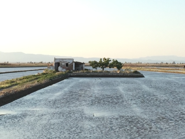 Es durante el mes de mayo, cuando más sorprende y sobrecoge recorrerlo en coche, pues parece como si estuvieras cruzando entre pequeños lagos a rebosar de agua,  que en realidad son los arrozales, inundados por completo para su cultivo.