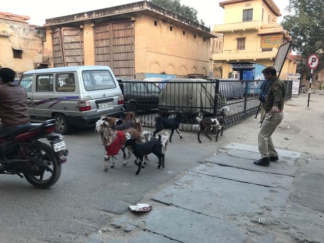 Vacas con joroba o sin ella… comiendo entre los escombros o simplemente dando por culo; perros deambulando sin rumbo fijo, loritos , ardillaspavos reales (símbolo de la India), monos quitandose piojos, camellos deseando darte una vuelta, cabritas entorpeciendo la circulación… elefantes para turistas…y un largo etcétera.