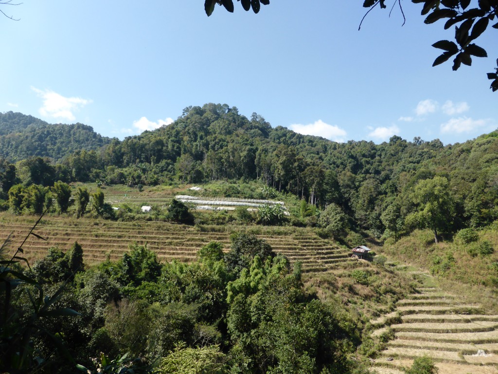 Caminamos por un recorrido precioso, al borde del riachuelo que da vida y sirve de suministro al poblado de la étnia Karen que vive en el Parque nacional Doi Inthanon.